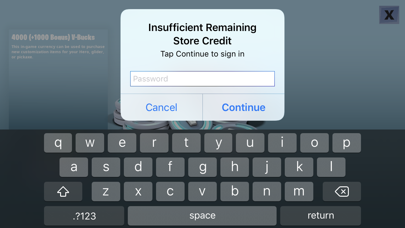 Insufficient Remaining Store Credit Tap Continue to Sign in